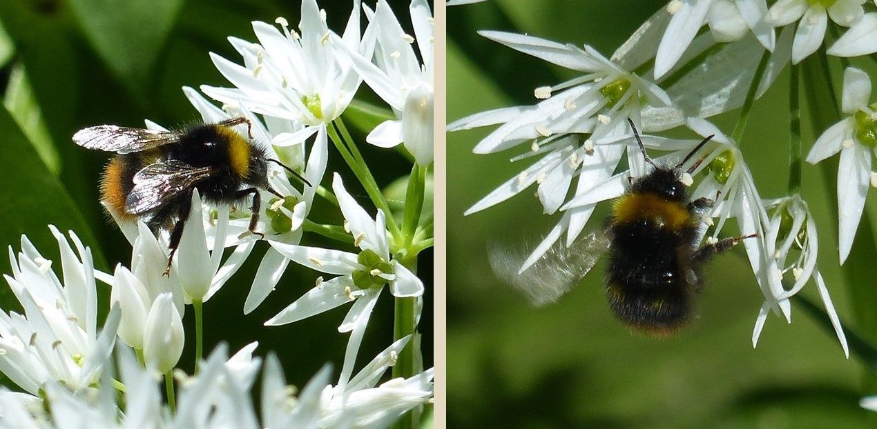 Beim Bärlauch wird der Honig direkt vom Fruchtknoten abgeschieden und ist daher auch Insekten mit kurzem Rüssel, wie hier den Arbeiterinnen der Wiesenhummel zugänglich. M. Neitzke
