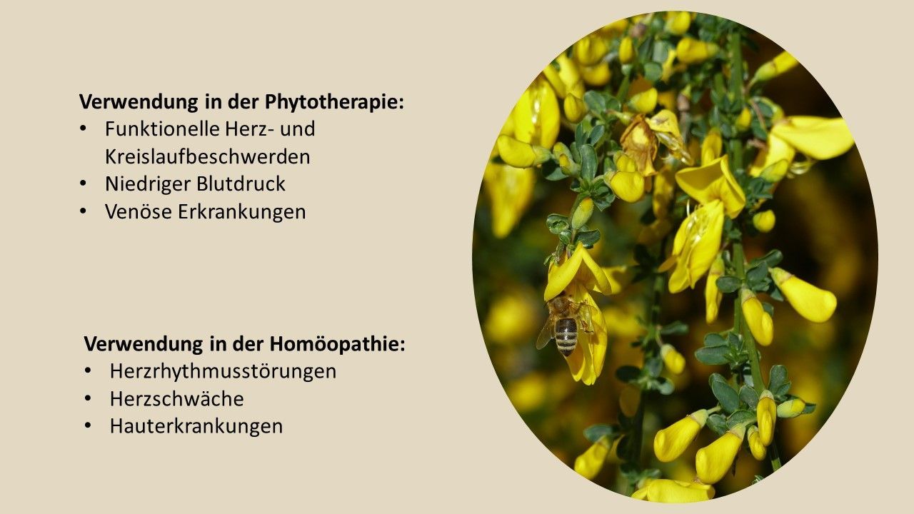 Einsatzgebiete des Besenginsters in der Phytotherapie und Homöopathie.[1,19,20]
