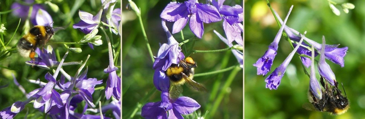 Auch Blüten mit einem langen Sporn, wie der Acker-Rittersporn (Consolida regalis) werden von der Gartenhummel besucht. Fotos: M. Neitzke