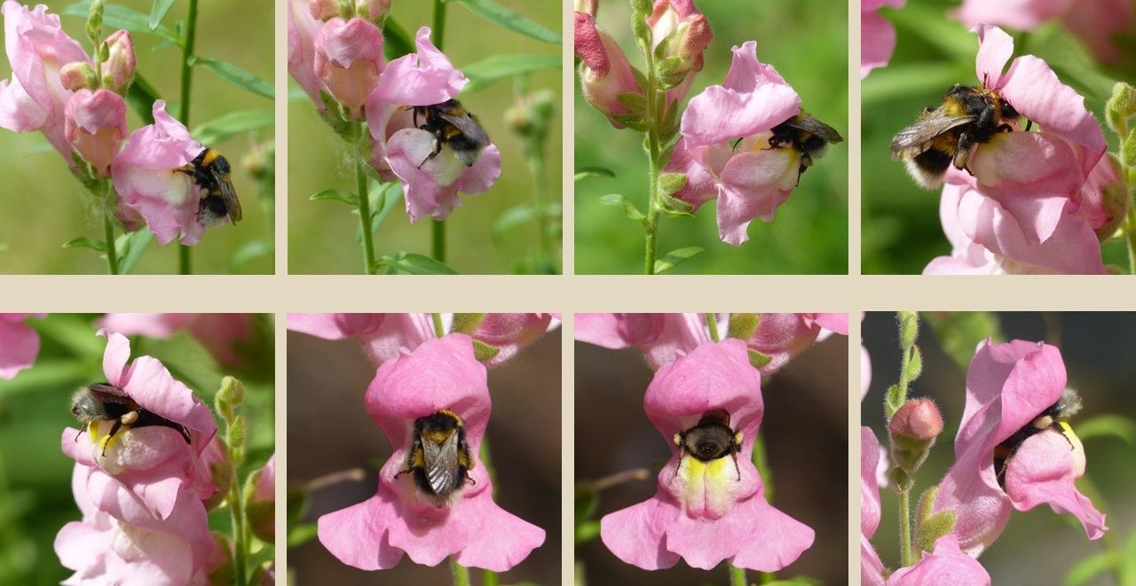 Bei dem Garten-Löwenmäulchen ist der Schlund der Blüte durch eine Emporwölbung der Unterlippe, die Maske verschlossen. Diese „Maske“ des Garten-Löwenmäulchens ist für die Gartenhummel kein Problem. Die kräftige Gartenhummel kann durch ihr Gewicht die Maske herabdrücken und sich dann in den Schlund zwängen. Fotos: M. Neitzke