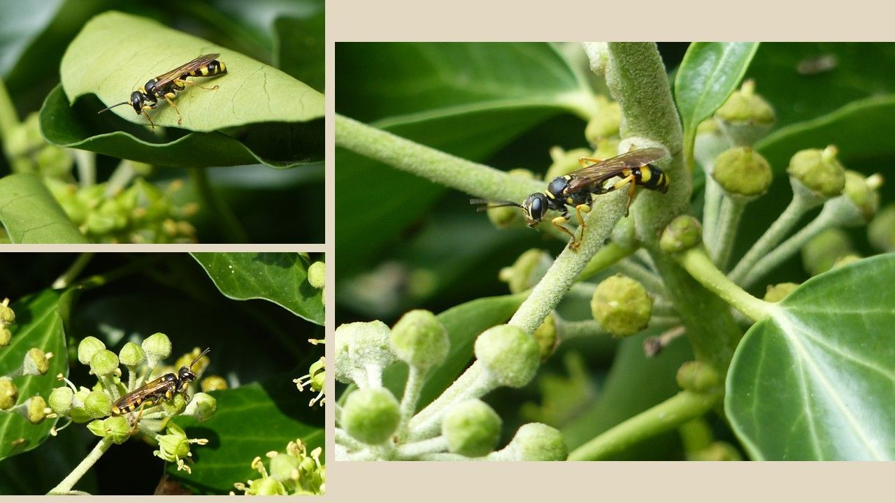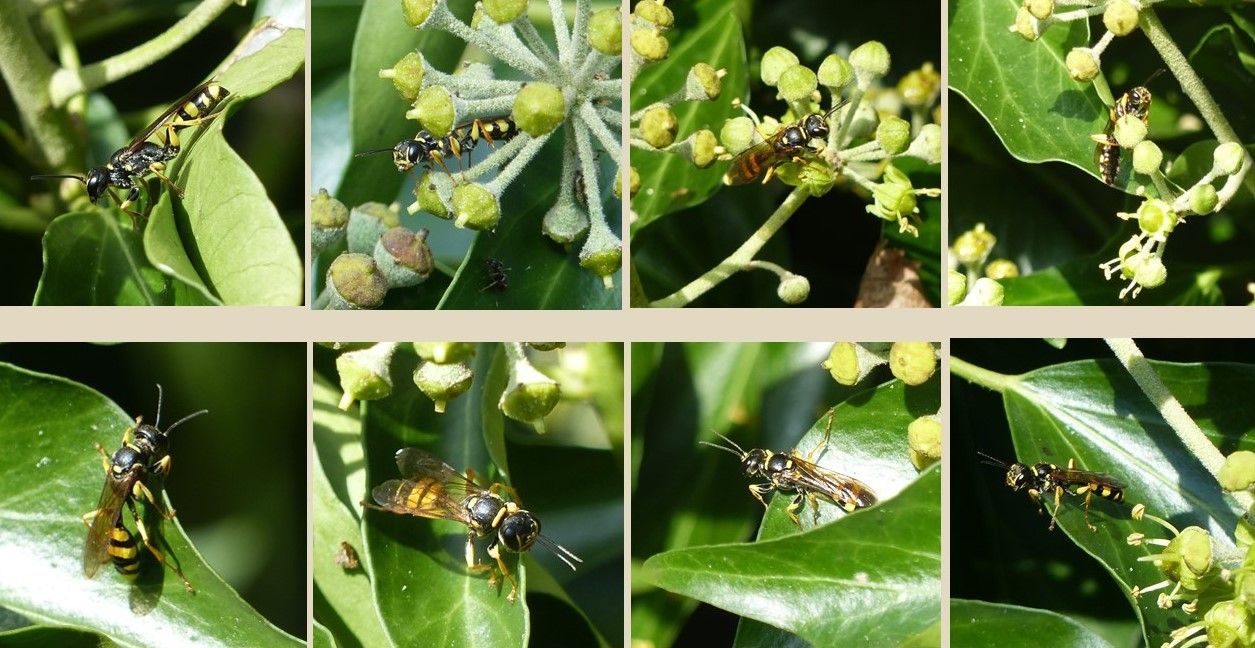 Aufmerksam und achtsam bewegt sich die Kotwespe durch das Dickicht des Efeus auf der Suche nach Beute. Ihre Umgebung hat sie dabei immer im Blick. Fotos: M. Neitzke
