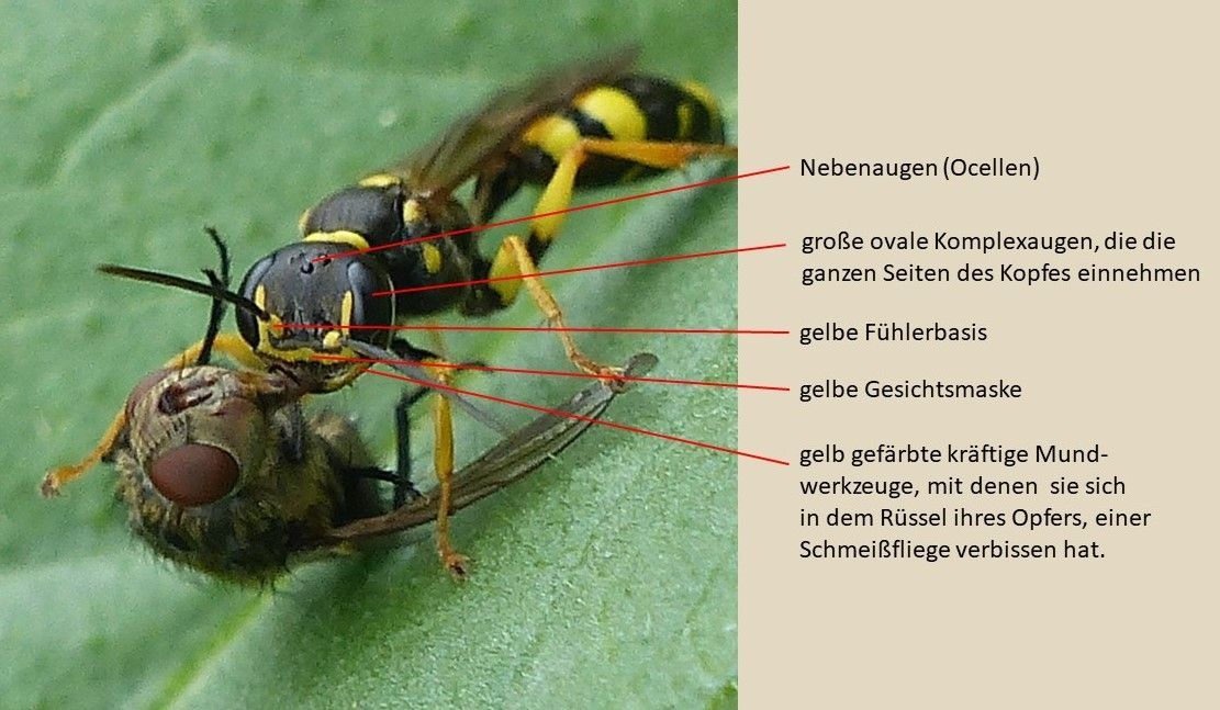 Die auffällige gelbe Gesichtsmaske macht die Kotwespe unverwechselbar. Fotos: M. Neitzke