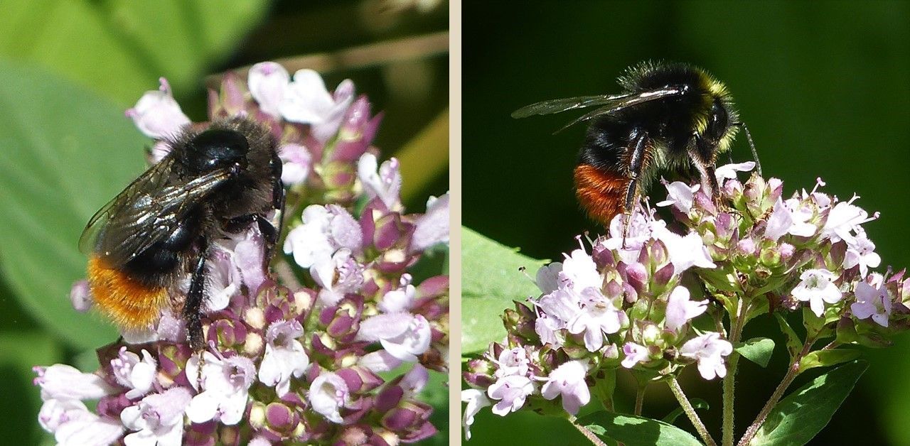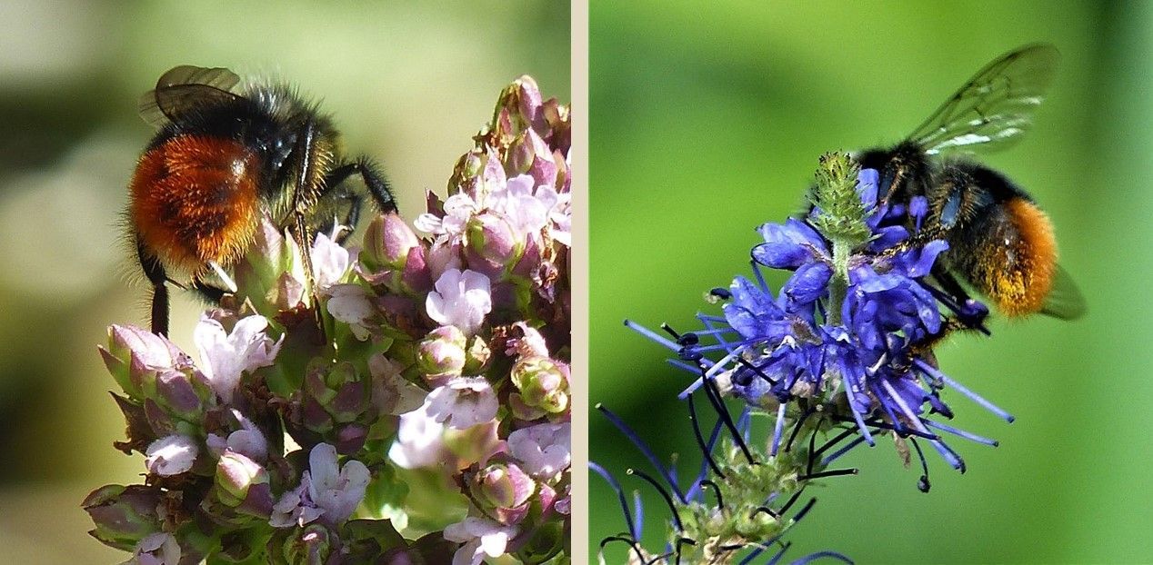 In dem rostroten Pelz der Hinterleibsabschnitte 4-6 haben sich gelbe Pollenkörner gefangen, die nun zur nächsten Blüte transportiert werden können. Fotos M. Neitzke